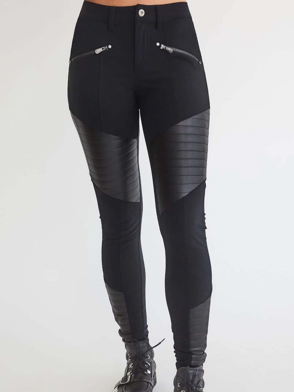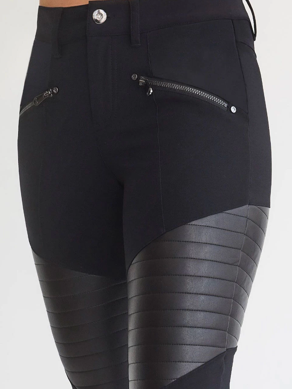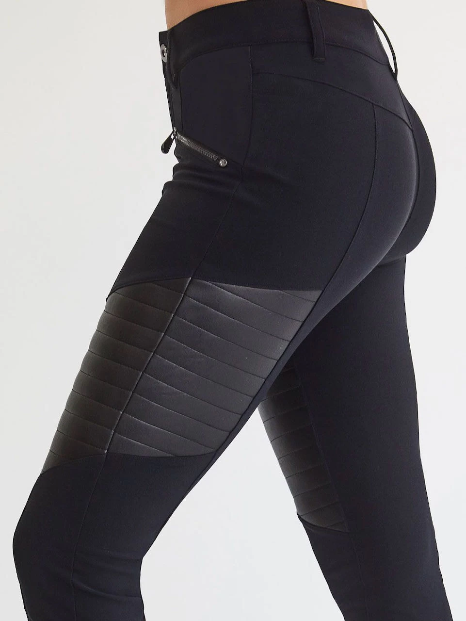 Alp N Rock “Sloan Pants” – this luxurious bestseller black pants in moto inspired style features vegan leather quilted paneling, zip fly with snap, decorating front zippers, cross stitching, made from sustainable bluesign® fabric, fantastic fit. Must have, indeed!