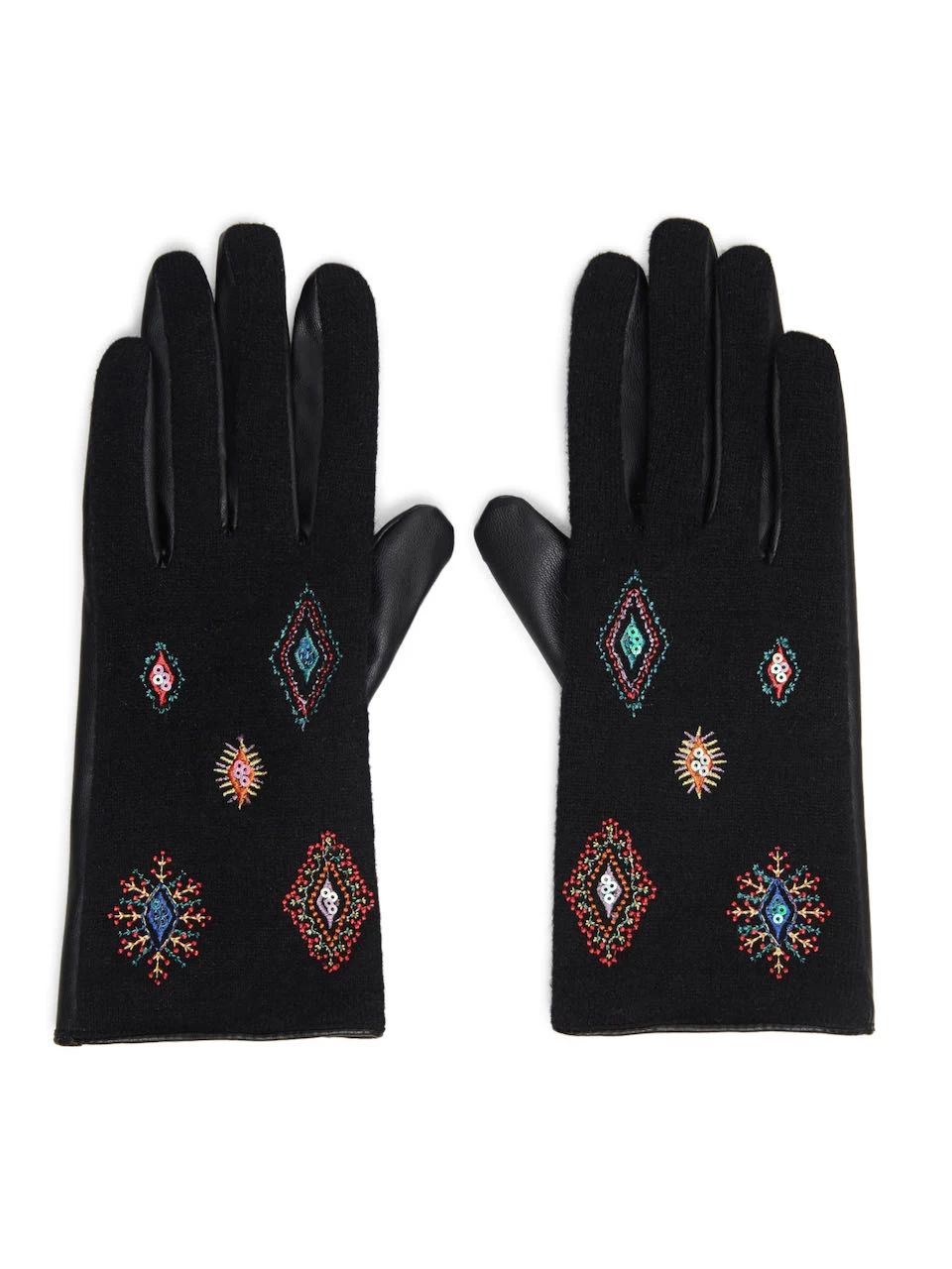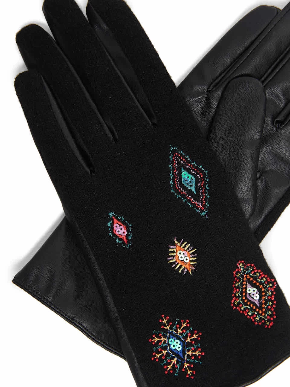 Desigual Gloves βJuliy Tribu Hibridoβ β beautiful hybrid (faux leather and knit) gloves featuring embroidery ethnic inspired design.